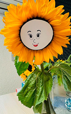 Kommt ein Vöglein angeflogen, Hunger hat's gar sehr: "Bitte liebe Sonnenblume, gib mir ein paar Körnchen her." Und das Vöglein pickt und pickt, Körnlein ohne Zahl.