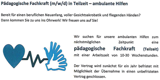 Download: Stellenangebot Pädagogische Fachkraft (m/w/d) in Teilzeit - ambulante Hilfen (PDF)