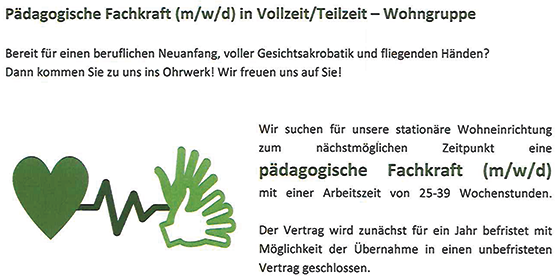 Download: Stellenangebot Pädagogische Fachkraft (m/w/d) in Vollzeit / Teilzeit - Wohngruppe (PDF)